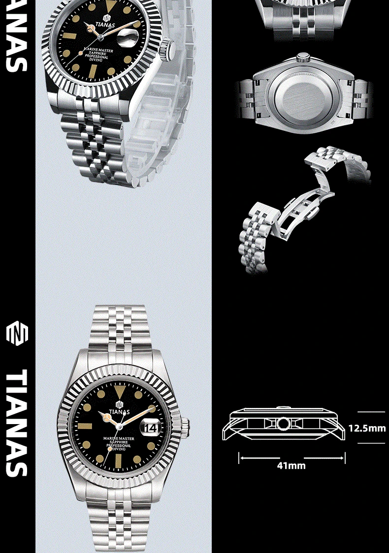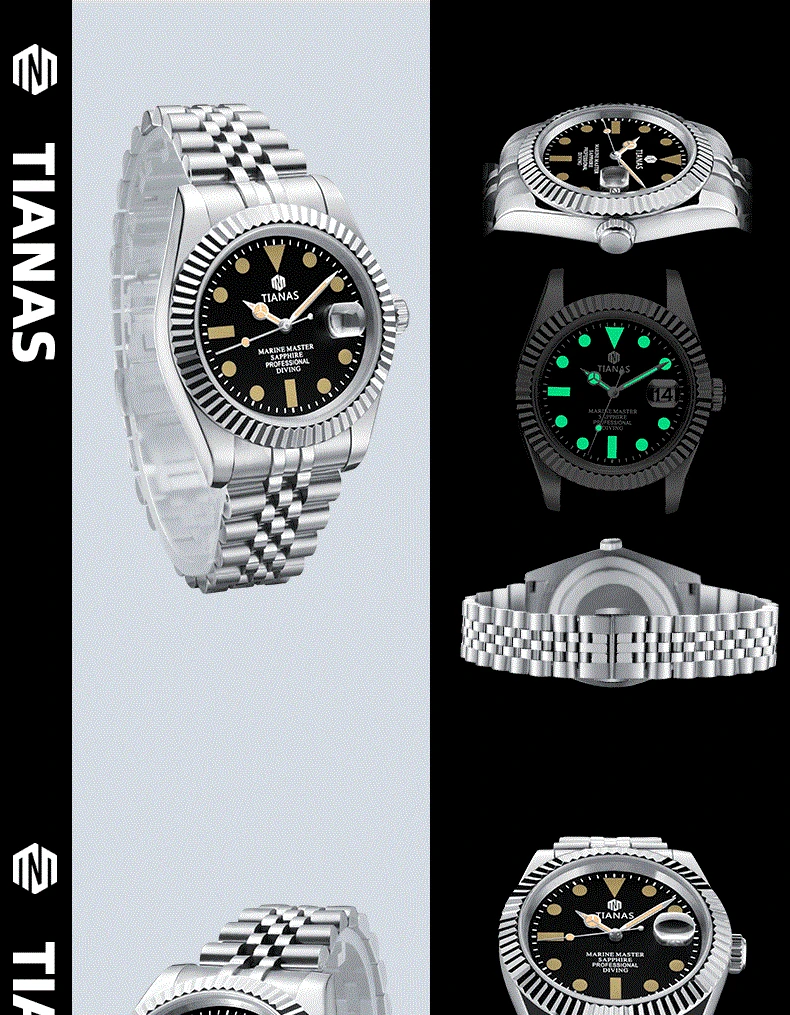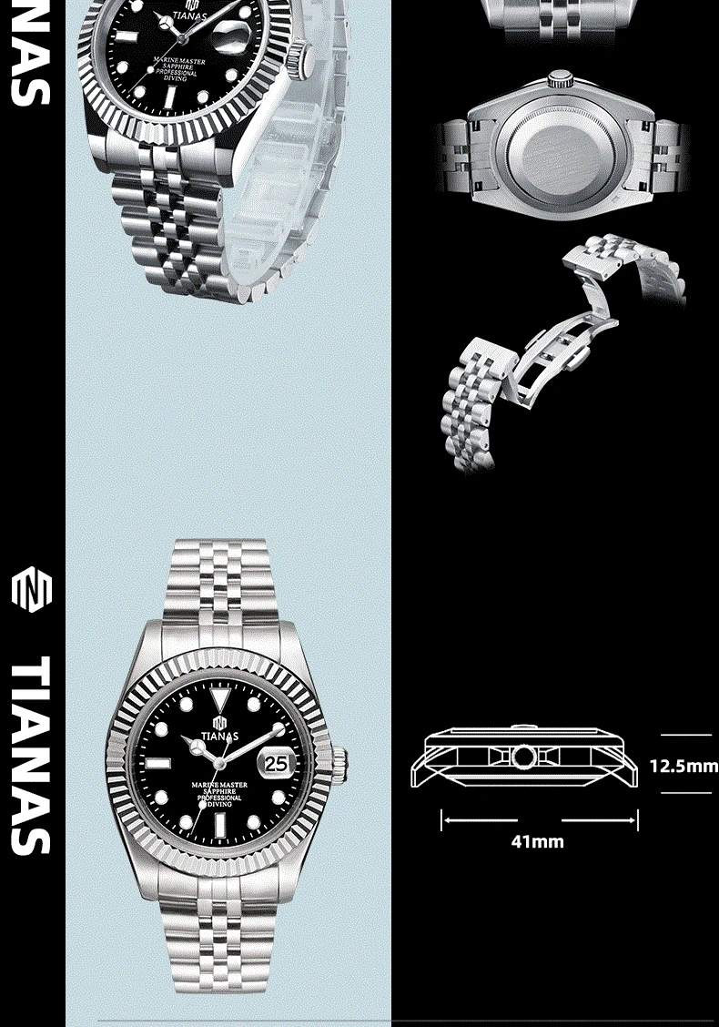 TIANAS Men`s Watch 316L Case Sapphire Glass 50M Waterproof Quartz Watches Men Diving Clock Men Relogios Masculino